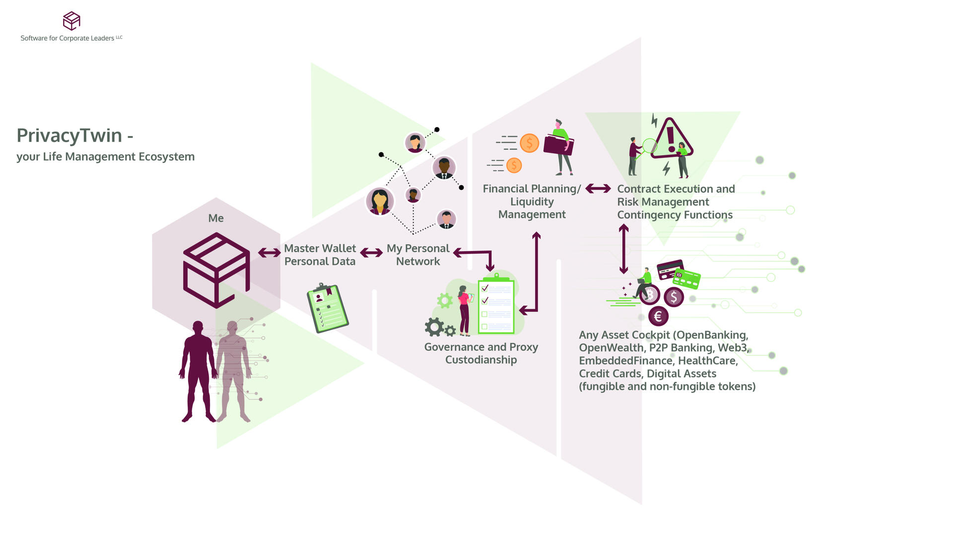 It allows people to own, control, and share their data as they wish and as required by law, from birth to death.In other words: It helps you create your own life management ecosystem.